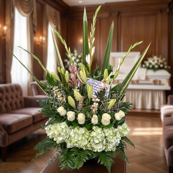 Llena el ambiente de paz, serenidad y armonía, expresa tu sentido pésame a los familiares de la persona fallecida enviando esta hermosa combinación de